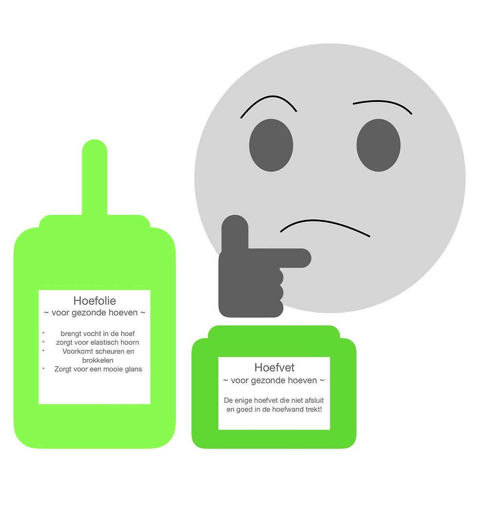 Al met al is hoefvet en hoefolie helemaal niet nodig voor het behouden of verkrijgen van goede gezonde paardenhoeven en kunnen zelfs een tegengesteld effect hebben. Regelmatig bekappen, gezonde voeding, veel vrije beweging en het lopen over wisselende ondergronden zijn erg belangrijk voor goede gezonde hoeven. Wanneer je paard last heeft van het scheuren en/of afbrokkelen van de hoefwand, is het van belang om de oorzaak hiervan te achterhalen en op te lossen. Een gezonde hoef verliest namelijk helemaal geen vocht door zijn omgeving. Pas bij slechte hoeven, die scheuren in de hoefwand hebben, kunnen omgevingsfactoren invloed hebben op de hydratatie, waardoor je in een vicieuze cirkel belandt. Scheuren in de hoef zorgen er namelijk voor dat vochtopnemende materialen vocht uit de hoef kunnen ontdekken, wat op zijn beurt weer zorgt voor een te droge buitenste laag, wat weer zorgt voor een te zwakke wand. Dit zorgt er weer voor dat er scheuren kunnen ontstaan en/of verergeren, wat dan ook het cirkeltje rond maakt. Om dit proces te stoppen is het dan ook van belang om de oorzaak aan te pakken, die ervoor zorgt dat er in het begin van het proces scheuren zijn ontstaan in de hoef. Het kan even duren voordat je resultaat ziet, want onder andere een tekort is niet binnen een dag aangevuld, maar uiteindelijk zal het er wel voor zorgen dat je paard weer vrolijk door het leven gaat met gezonde een mooie hoeven!